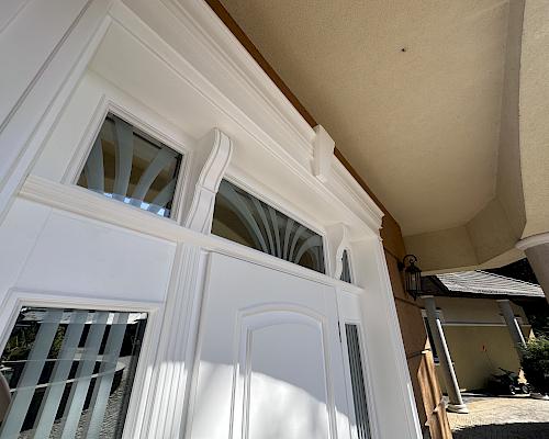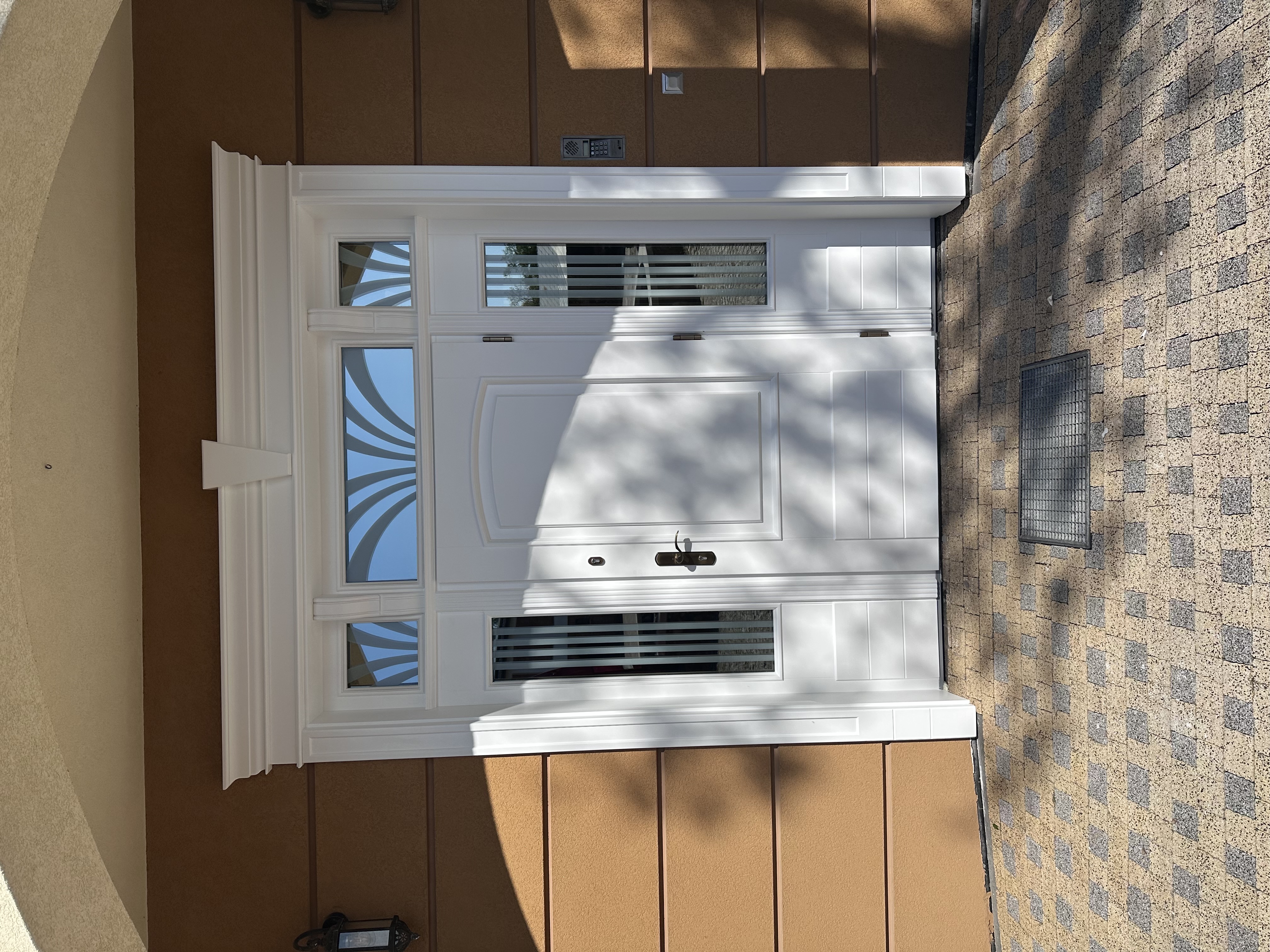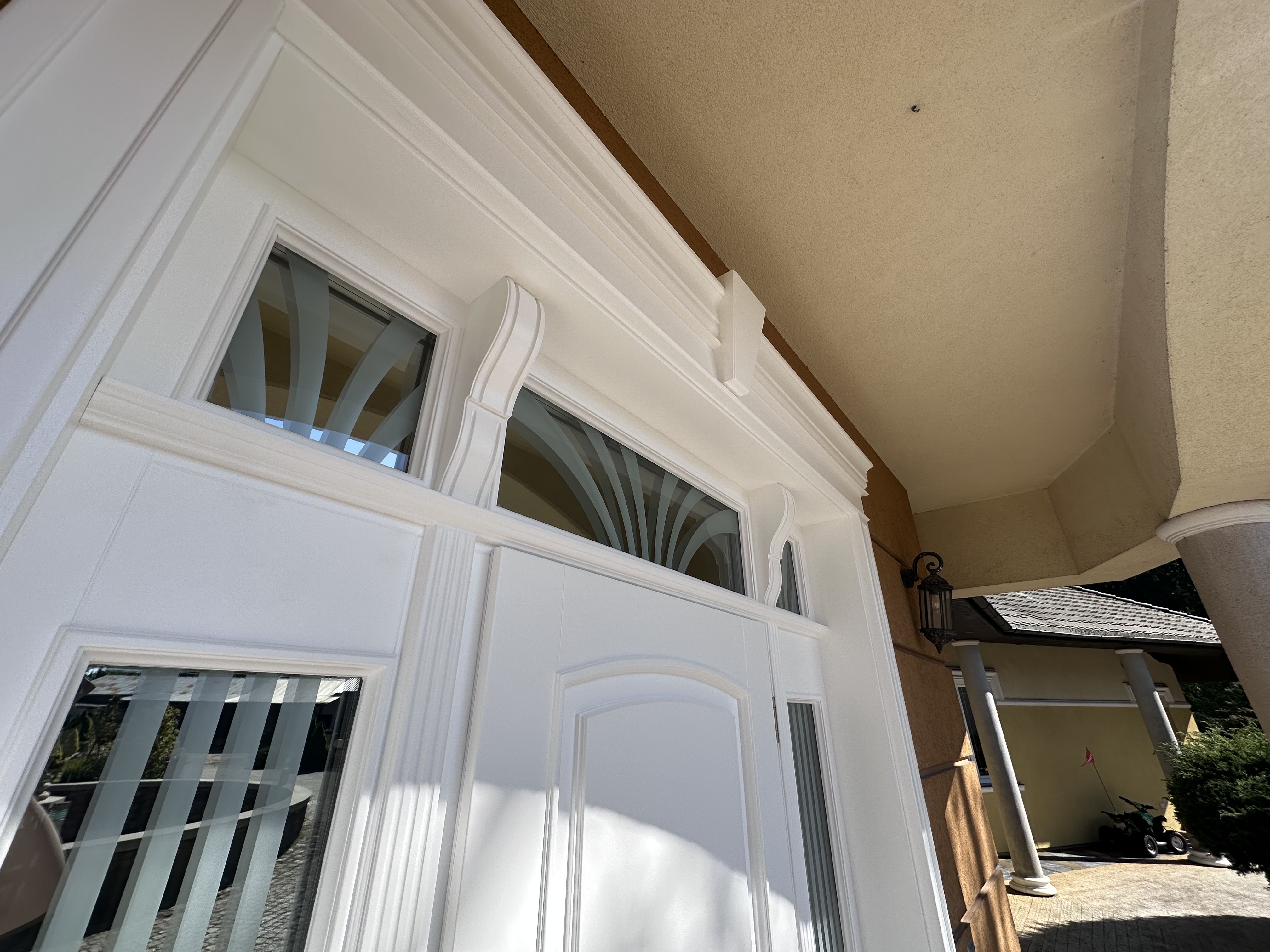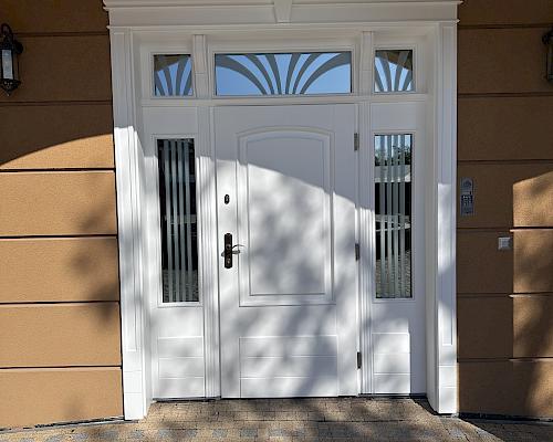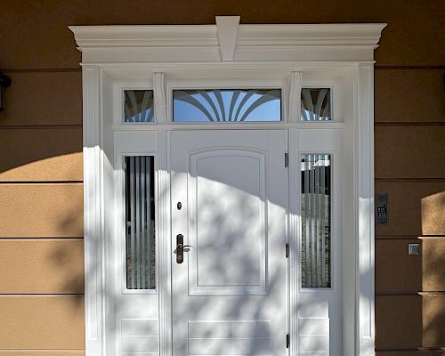 Drzwi zewnętrzne wykonujemy z drewna warstwowego litego DAR RED MERANTI MAHONE Drzwi standard w grubości skrzydła 70mm, drzwi pasywne w grubości skrzydła 90 mm.